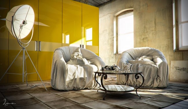 Phải xác định đối tượng nào cần hoặc không cần trong khung cảnh của mình. Vứt đi bất kỳ những đối tượng nào dư thừa hoặc làm người xem mất tập trung (cái này ko phải là tham mà là QUÁ THAM ^^). Và tất nhiên, mọi thứ chả có gì gọi là hoàn hảo, 1 chiếc ghế bành nặng sẽ tạo cho ta cảm giác ấm cúng, trong bài render dưới Ramon muốn thể hiện kỹ năng làm vải của mình . Các đối tượng có nhiều chi tiết có thể làm cho chúng ta chú ý tập trung vào chúng hơn.