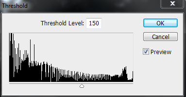 4. Image>Adjustments>Threshold, chọn ngưỡng sáng cho phù hợp (kéo về bên trái thì vùng tạo ra tia nắng sau này sẽ nhiều và ngược lại)